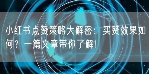 小红书点赞策略大解密:买赞效果如何?一篇文章带你了解!
