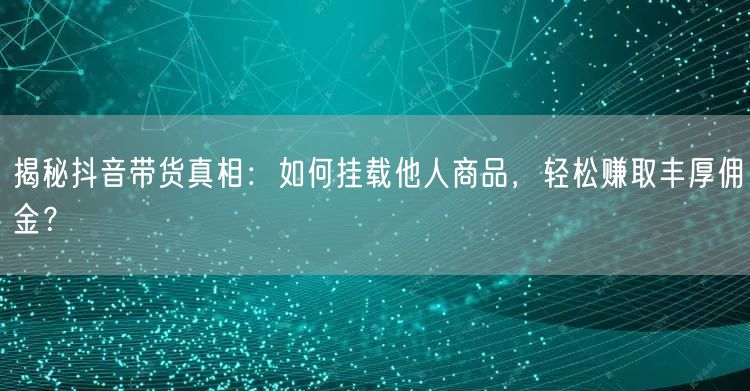 揭秘抖音带货真相,教你如何挂载他人商品轻松赚取丰厚佣金,带你深入了解抖音带货的全过程,助你成为带货达人。
