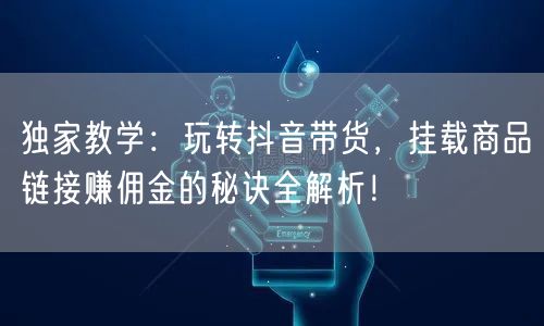 独家教学:玩转抖音带货,挂载商品链接赚佣金的秘诀全解析!
