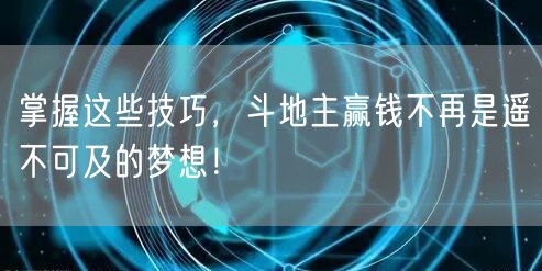 掌握这些技巧,斗地主赢钱不再是遥不可及的梦想!