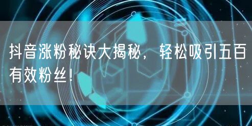 通过以上涨粉秘诀的实践,你将轻松吸引五百有效粉丝。不断学习和优化你的抖音营销策略,让你的影响力在抖音平台上持续扩大!