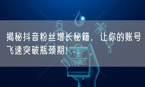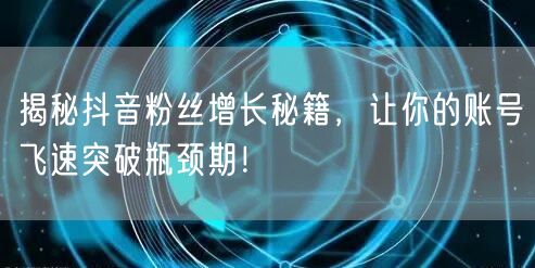 通过以上几个方面的努力,你可以轻松突破抖音账号的瓶颈期,实现粉丝数量的快速增长。记住,优质内容、精准定位、增长技巧和运营策略是提升抖音账号影响力的关键。不断尝试、优化和创新,你将逐渐在抖音平台上取得成功!