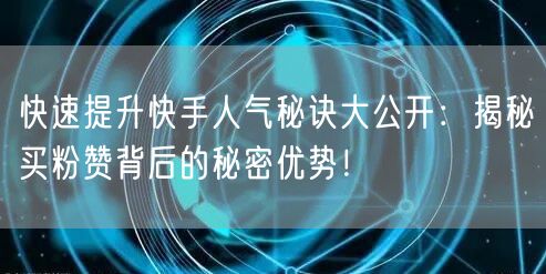 快速提升快手人气秘诀大公开:揭秘买粉赞背后的秘密优势!